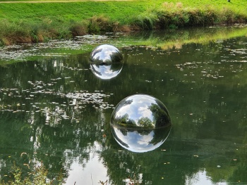| 池に浮かぶ半球が面白いエフェクトを出している | |