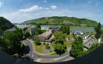 博物館から間欠泉迄は船で15分程。ライン川から町を眺めます。