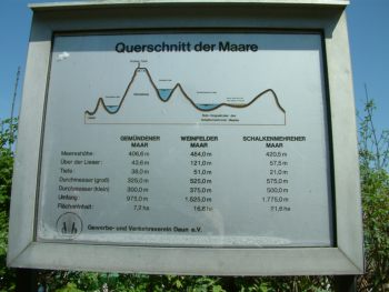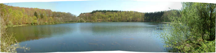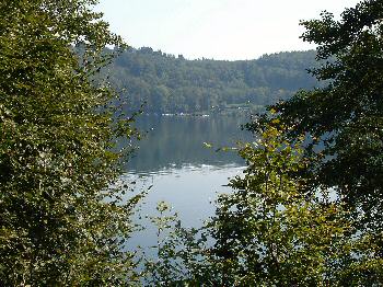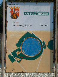 | Pulvermaar直径700m、水深70m。アイフェル地方で最も大きなマール湖。残念ながら湖を一望出来る。 公式サイトへ |