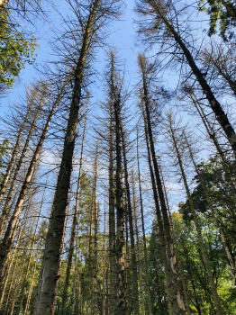 | 死んでしまった木は伐採される | 森が死んでしまうのは大問題になっている |