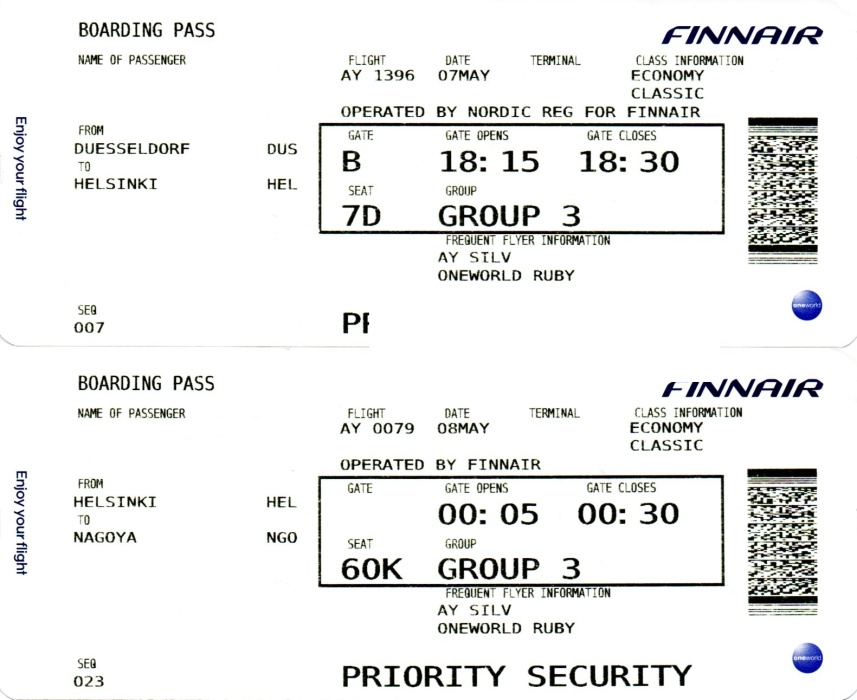 今回のフライトは格安なフィンランド航空です。最近スタッフのストライキが続き、運航にかなりの支障が生じたため、今年は欧州ワースト・エアラインに選ばれてしまいました。