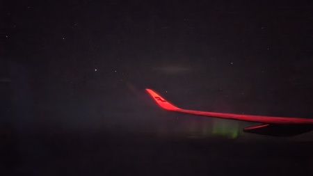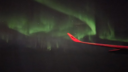 夜23時発だった為かなり爆睡していて、ふと目が覚めた時に外を見ると、オーロラが舞っていました。
