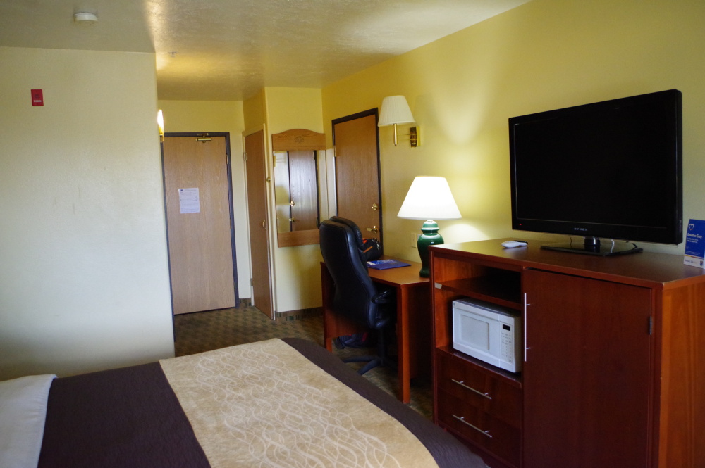 サン・フランシスコ インペリア・ルイン 一般的なモーテルヨセミテ国立公園近くのグローブ・ランド・ホテル 高い割には部屋は狭い。デス・バリーへ向かう途中にあるビショップ町。スーバー8モーテル。何処へ行っても食事は紙皿にプラスチックのフォークラス・ベガスではストラトスフェーレ・ホテル。Booking.com用の部屋は外が見えないので、15ドル余計に出して上の階に移してもらう。タワーの中のファストフードショップでご飯。なんかさえない。グランド・キャニオンから10km位離れた所に有るグランド・キャニオン・イン。部屋はかび臭かった。モニュメント・バレーのゴールディングス・ロッジ。中は綺麗。モニュメントバレーが見えても、見えなくても料金は同じ。Booking.comへネガティブの評価を入れた。このホテルはBooking.comにネガティブの評価を故意に削除させる。事実表示されている評価は全て10。お勧めしない。イエロー・ストーンへ向かう途中でフィルモアの一泊。コンフォート・イン。観光地で無いから料金は安い。むっとする匂いがしたが、中は綺麗。ここでも食器は紙とプラスチック。イエロー・ストーンでトラベラーズ・ロッジの宿泊。狭い、臭い。家具もボロ。バスルームは改造してあって綺麗。なにこれ?日食の時に宿泊したマッコール。スーパー8モーテル。今回の旅行では最高。サービス良し。清潔。最終目的地ポートランドへ行く途中でボードマンで一泊。リバー・ロッジ。工業地帯の隅っこにあるホテル。中はとてもステキ。久々に瀬戸物で出てきた朝食。ポートランドのラマダ・ポートランド・エアポート。余り綺麗じゃない。次回は他に泊まろう。