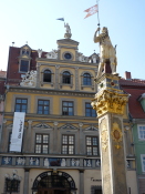 この広場では巨大な郵便局が目を引きます。 中世ではここで輪石(製粉用の石で出来た輪)が毎日300個程売買されていました。 その他にゴチック様式のウルスラ修道院(Ursulinenkloster)やエアフルトで学術を取ったルターの像も有ります。 |