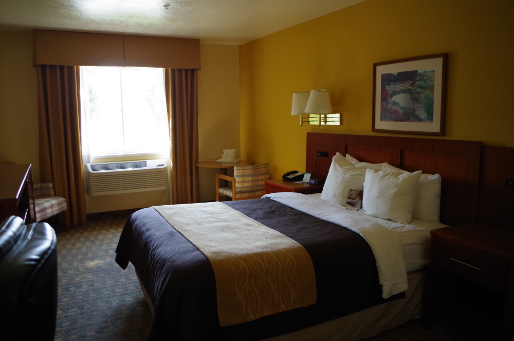 サン・フランシスコ インペリア・ルイン 一般的なモーテルヨセミテ国立公園近くのグローブ・ランド・ホテル 高い割には部屋は狭い。デス・バリーへ向かう途中にあるビショップ町。スーバー8モーテル。何処へ行っても食事は紙皿にプラスチックのフォークラス・ベガスではストラトスフェーレ・ホテル。Booking.com用の部屋は外が見えないので、15ドル余計に出して上の階に移してもらう。タワーの中のファストフードショップでご飯。なんかさえない。グランド・キャニオンから10km位離れた所に有るグランド・キャニオン・イン。部屋はかび臭かった。モニュメント・バレーのゴールディングス・ロッジ。中は綺麗。モニュメントバレーが見えても、見えなくても料金は同じ。Booking.comへネガティブの評価を入れた。このホテルはBooking.comにネガティブの評価を故意に削除させる。事実表示されている評価は全て10。お勧めしない。イエロー・ストーンへ向かう途中でフィルモアの一泊。コンフォート・イン。観光地で無いから料金は安い。むっとする匂いがしたが、中は綺麗。ここでも食器は紙とプラスチック。イエロー・ストーンでトラベラーズ・ロッジの宿泊。狭い、臭い。家具もボロ。バスルームは改造してあって綺麗。なにこれ?日食の時に宿泊したマッコール。スーパー8モーテル。今回の旅行では最高。サービス良し。清潔。最終目的地ポートランドへ行く途中でボードマンで一泊。リバー・ロッジ。工業地帯の隅っこにあるホテル。中はとてもステキ。久々に瀬戸物で出てきた朝食。ポートランドのラマダ・ポートランド・エアポート。余り綺麗じゃない。次回は他に泊まろう。