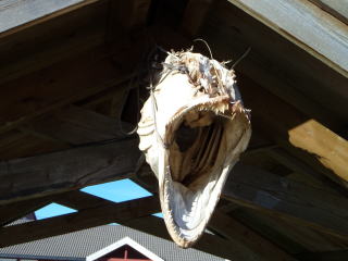 休憩用のベンチの屋根は魚の頭蓋骨。 |