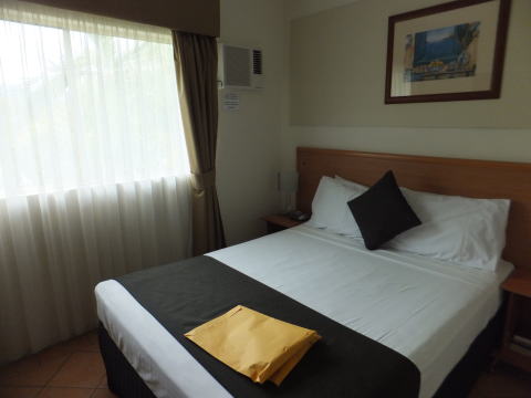 | シドニーで乗り換えて、更に2時間半飛んでケアンズに到着。 最初の宿泊場所はQueen's Court Motelです。 オーストラリアは産業なる物が無いから、全て輸入。宿泊費も例外無く目茶高いです。 |