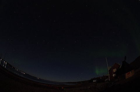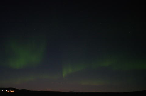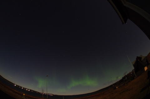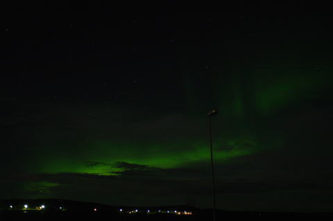 この日は夜中過ぎに見かけはボーっと白いオーロラが出ているのを、ベットに寝っころがりながら見ていました。