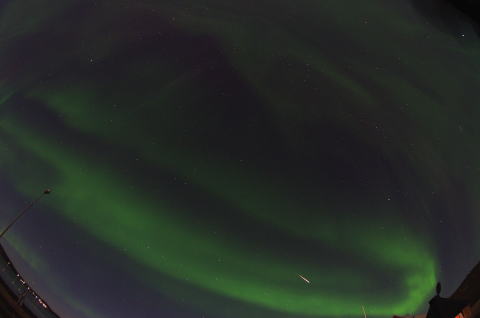 オーロラとりゅう座流星群の流星の共演