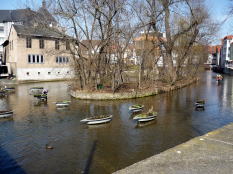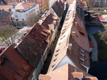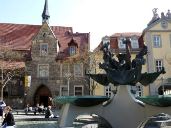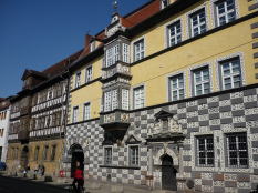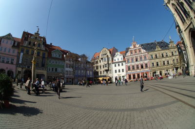 この広場では巨大な郵便局が目を引きます。 中世ではここで輪石(製粉用の石で出来た輪)が毎日300個程売買されていました。 その他にゴチック様式のウルスラ修道院(Ursulinenkloster)やエアフルトで学術を取ったルターの像も有ります。 |